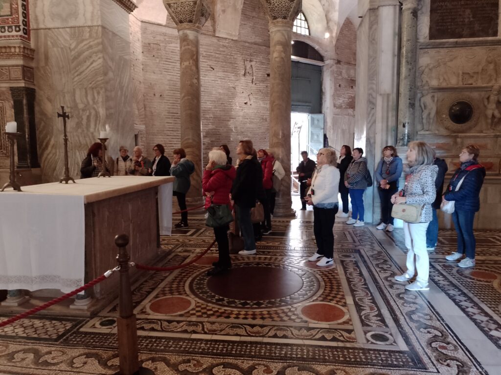 Dopo la pausa pranzo si sono recati al Mausoleo di Galla Placidia e a seguire al Battistero Neoniano, alla Basilica di San Vitale, al Museo Arcivescovile e alla Cappella S. Andrea, per finire con una passeggiata nella zona dantesca.